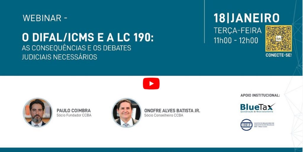Webinar: O DIFAL/ICMS E A LC 190: as consequências e os debates judiciais necessários- 18.01.2022