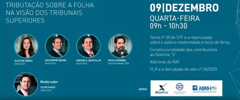 Palestra – Webinar: Tributação sobre a folha na visão dos Tribunais Superiores – 09.12.20